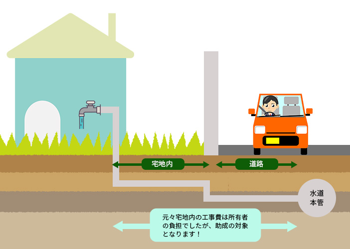 給水管は所有者個人の財産となるため、取替は所有者の負担で行うものになっていますが、安全なお水の供給を進めるため、香川県広域水道企業団高松事務所が工事費を助成しています。
